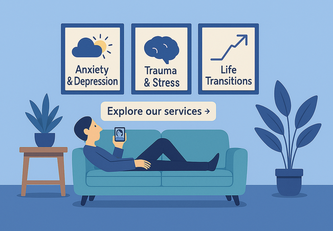 Anxiety, mood disorders (e.g., depression), stress/adjustment to life changes, grief, trauma/PTSD, relational issues, development of coping skills and wellness/growth.